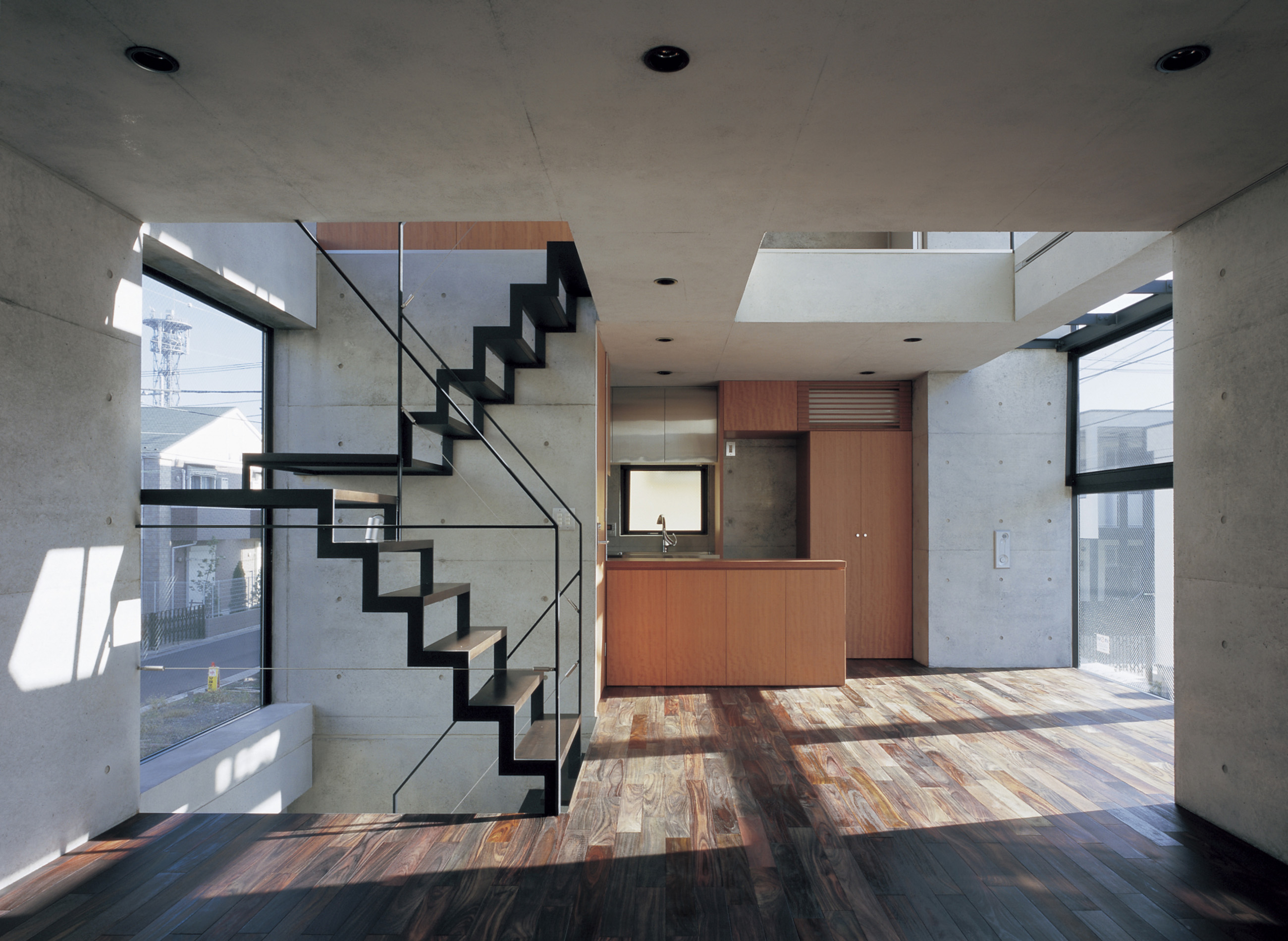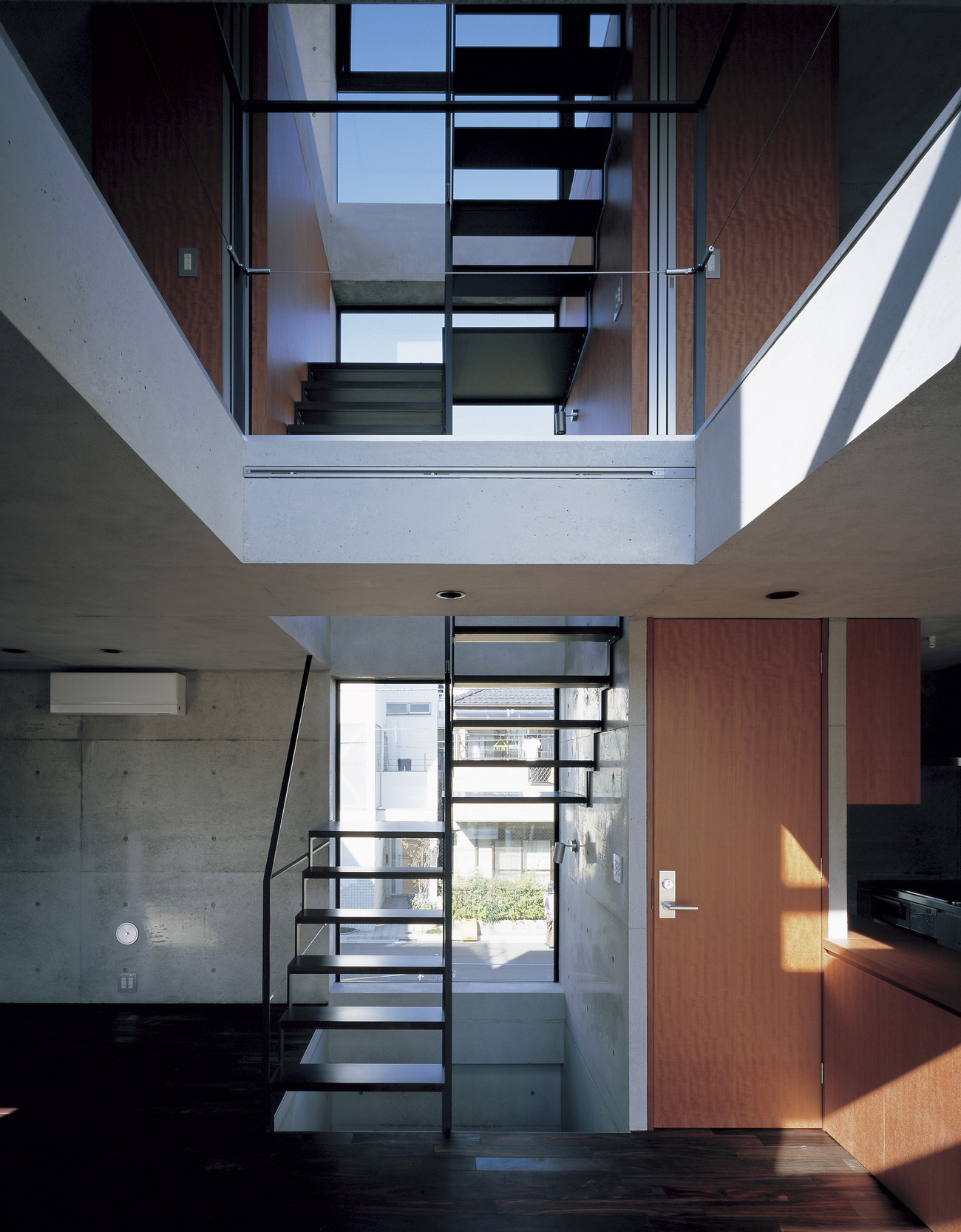 Location Mizue Edogawa ward Tokyo Completion 2007. 11 Lot area 66.00㎡ Site area 39.58㎡ 1F floor area 26.60㎡ 2F floor area 39.58㎡ 3F floor area 31.06㎡ Total floor area 124.96㎡ Structure RC Scale 4F Typology Private Housing Family structure Mother + a couple (30s) + 2 children Structure engineers Masaki Structural Laboratory Kenta Masaki Facility engineers Shimada architects Zenei Shimada Construction sobi Photographer Masao Nishikawa -
