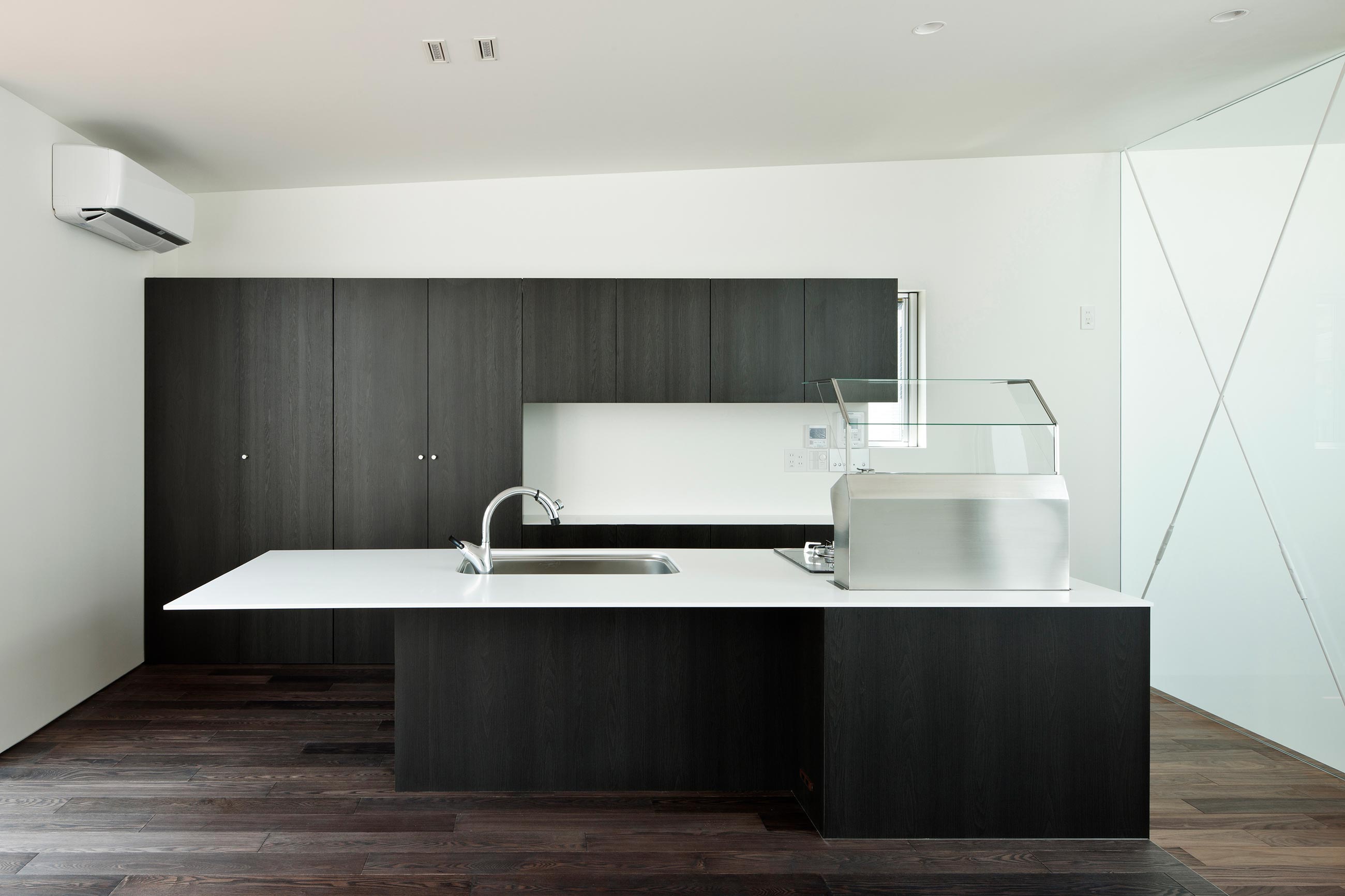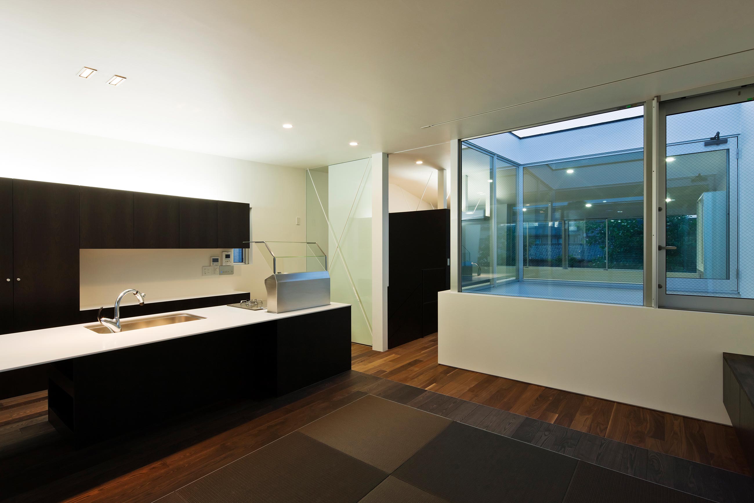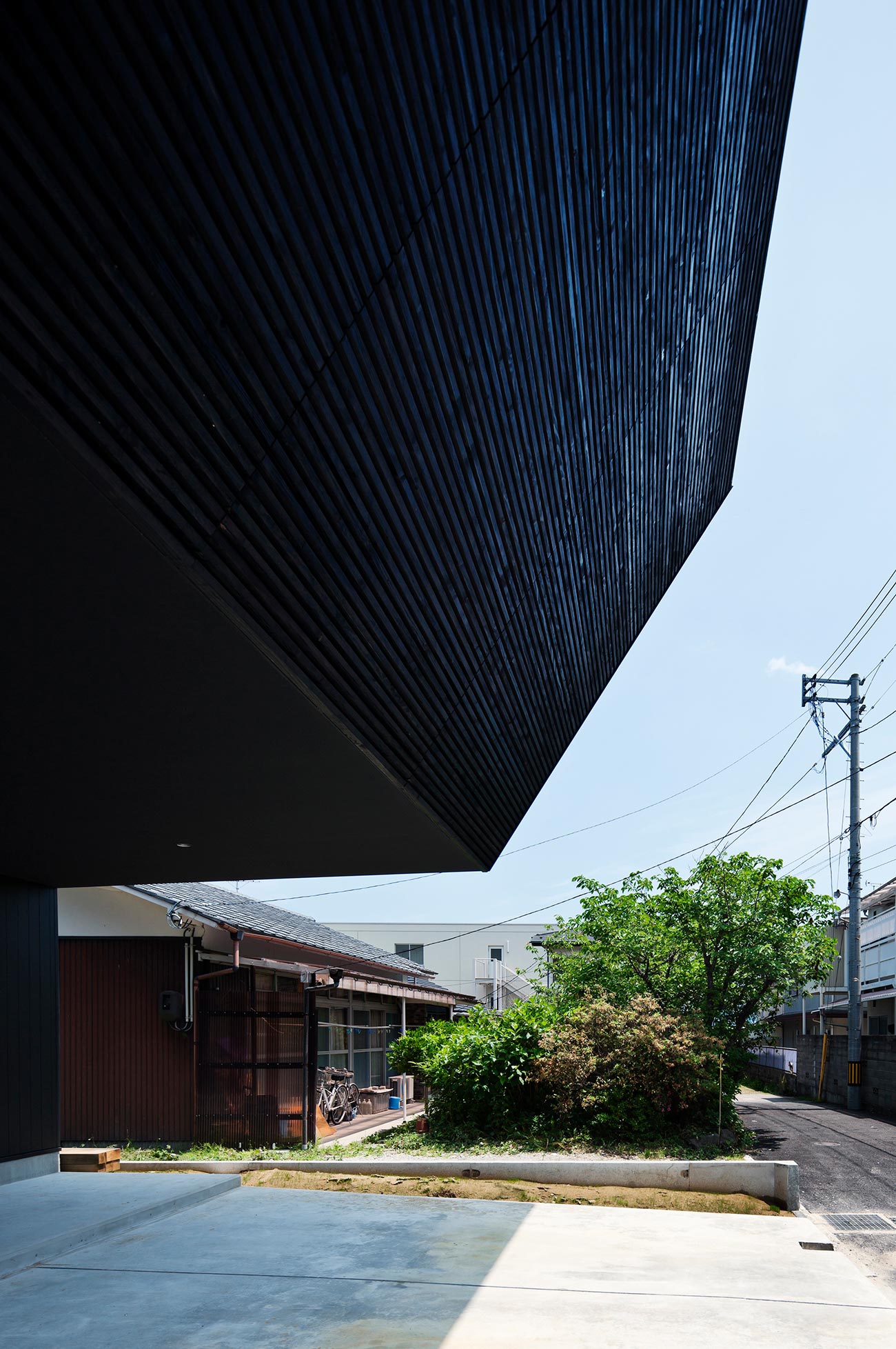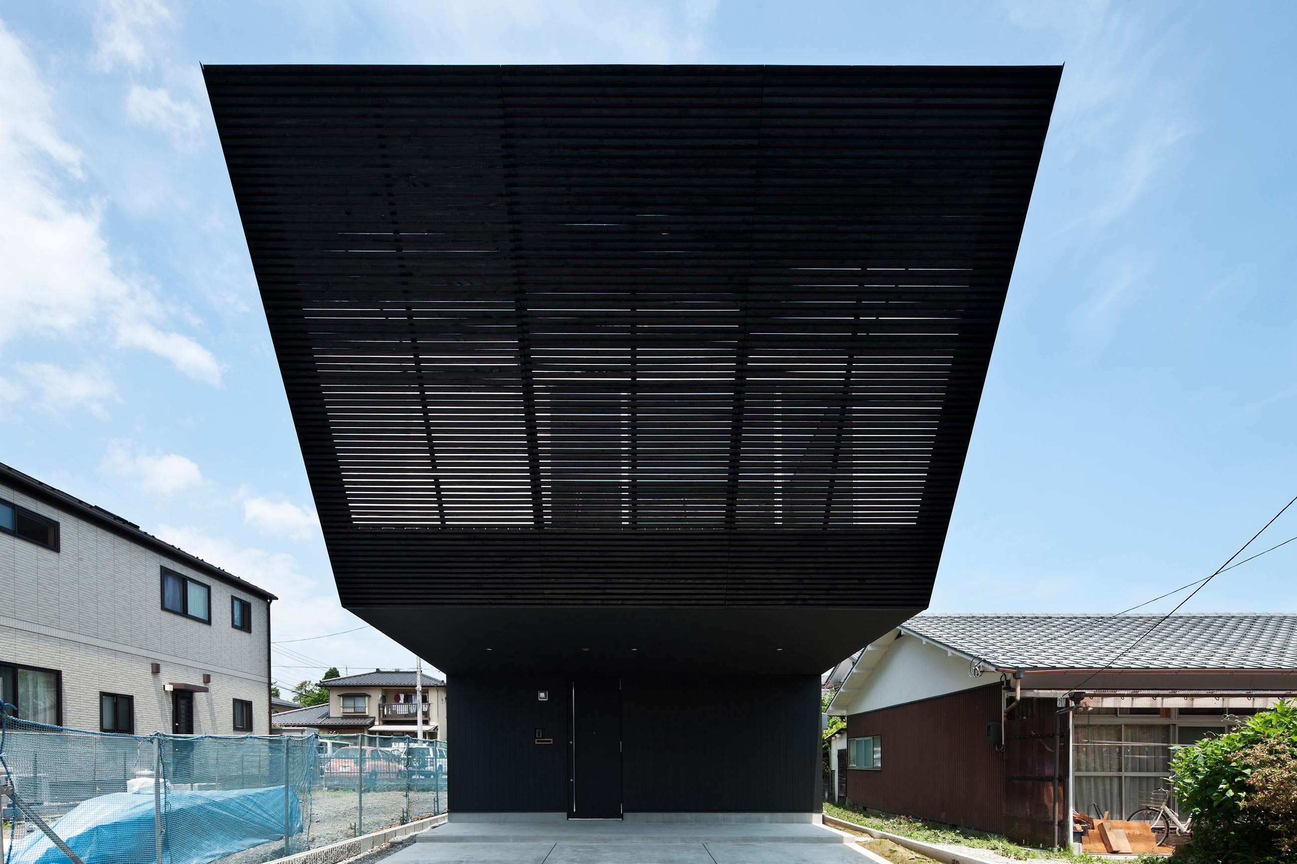 The garage lay open space for the masters cherished car and the wifes medium sized bike. LIFT became an peculiar cantilever volume stretching out obliquely into the sky. The second floor holds a court yard in the center which provides open space in the compact volume. From the living room with the face-to-face kitchen and the dinning space for lying on the floor, the borrowed scenery of the court yard and the balcony provides placid atmosphere. LIFT gives deep perspective in its compact volume. An open urban lifestyle would be there.