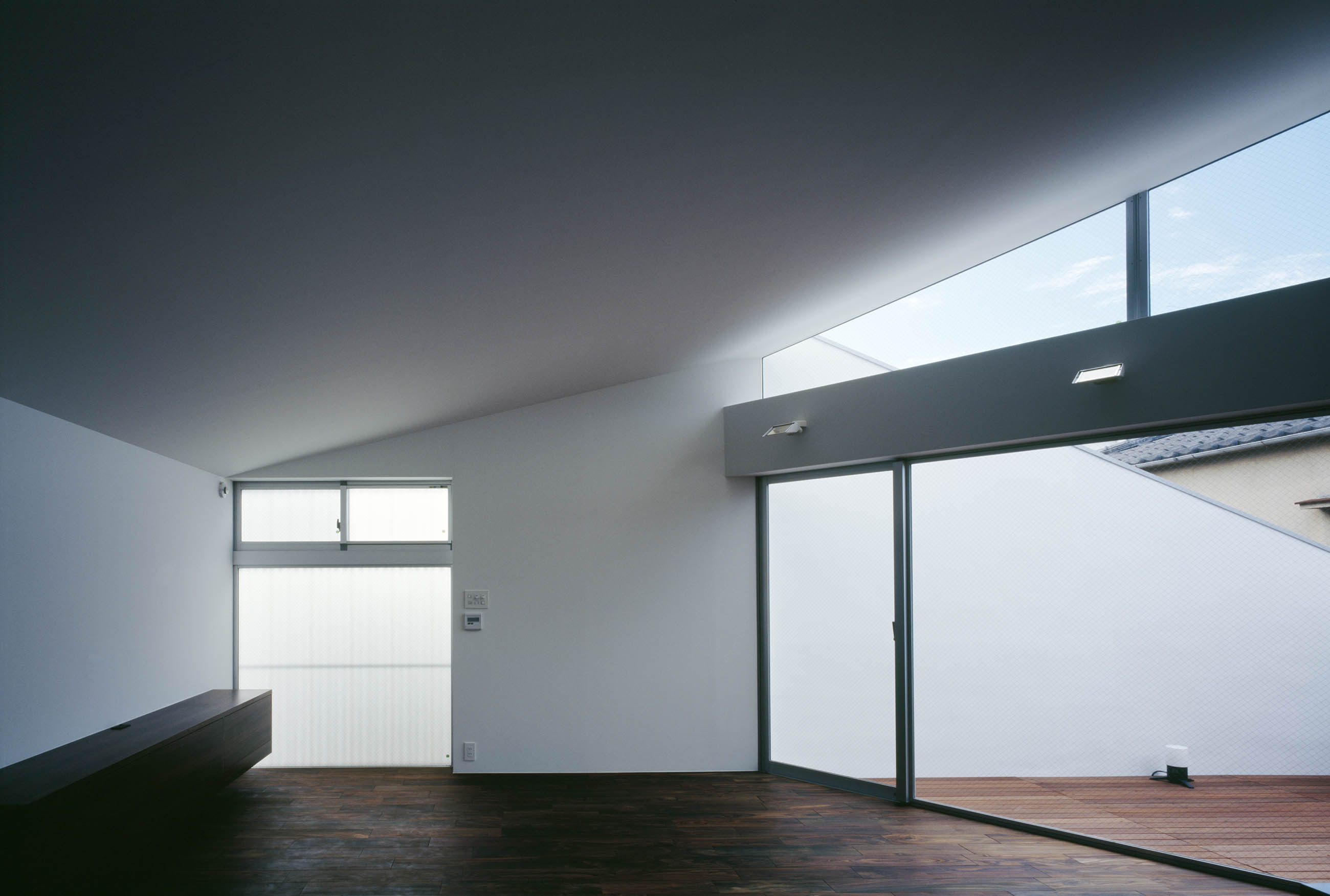 2階は密集する隣家から覗き込まれることがないようあえて壁を高く立ち上げたプライベートルーフテラスとし、自分達の青空を獲得できることを目指しました。