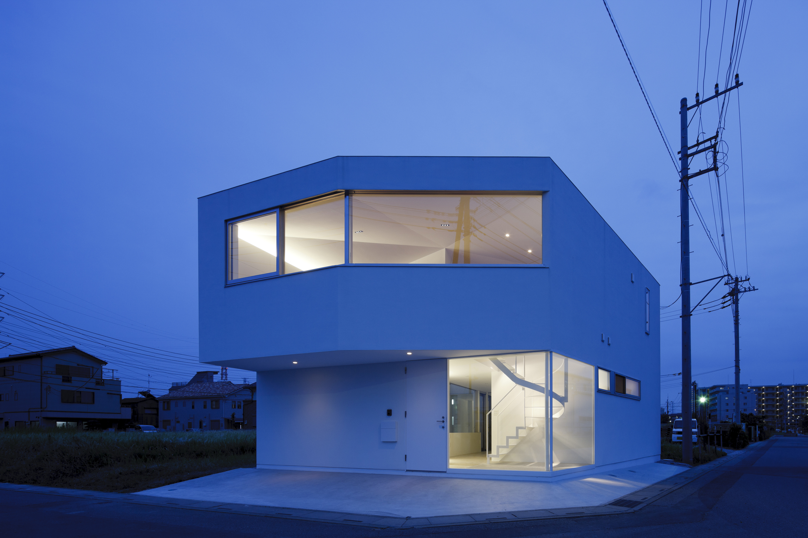 未来の公園に対し安定したパノラマビューを獲得するために設けた水平連続コーナーサッシが特徴的なファサードをつくりあげている。エントランス部分に見えるオブジェのような螺旋階段はさながらショップのショーウィンドウのようであり2階部分の跳ね出したボリュームを一層強調している。