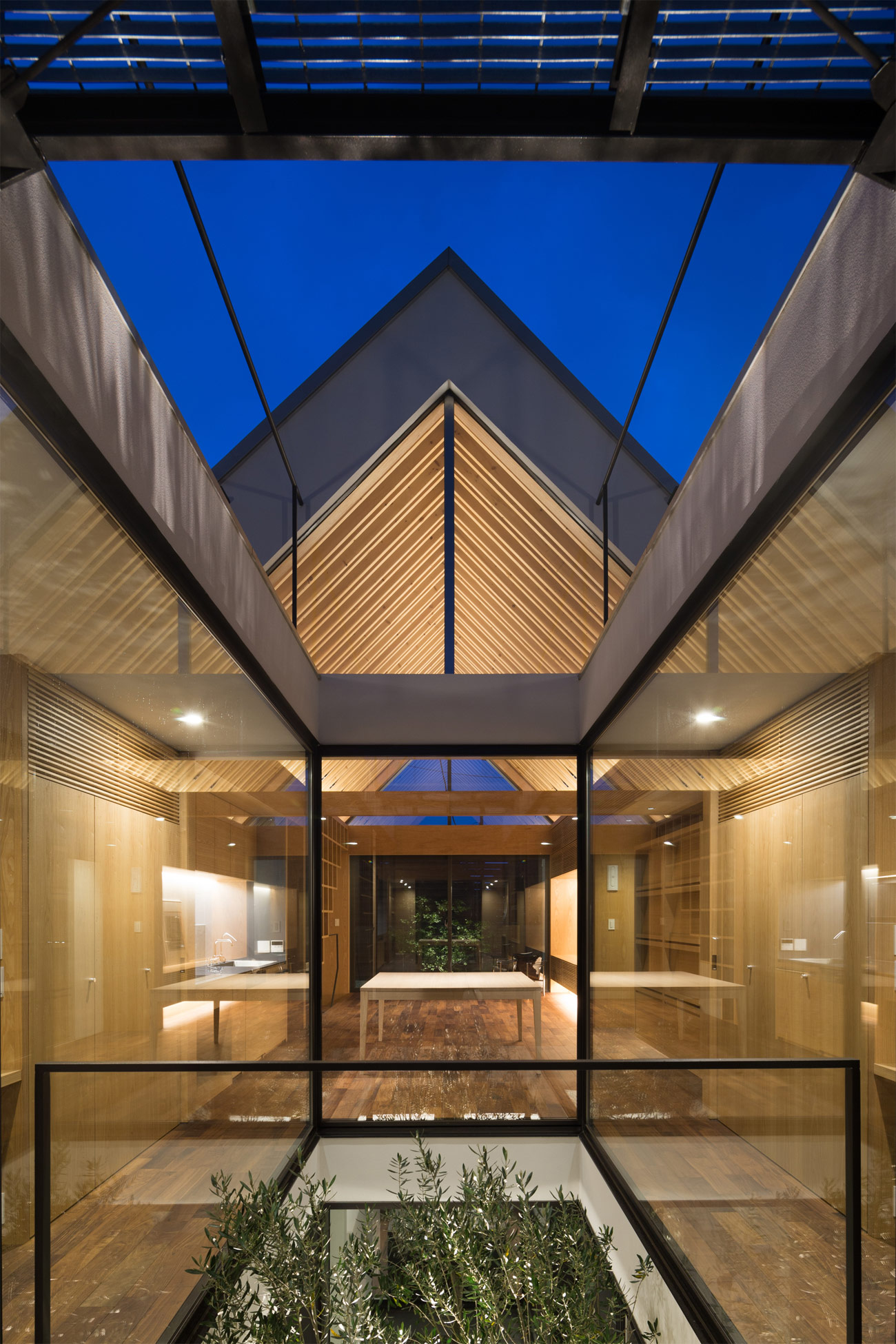 The site is located in a quiet residential area of Tokyo. The client is a couple who both work at a university. Upon planning the residence, their request was to keep two independent and equal private dens, and to provide an open living environment while maintaining their privacy. A courtyard and a front yard are placed on the south and the north and spaces are located symmetrically. Our intention is to provide a living environment where one can feel the air outside from everywhere in the house such as private room or living and dining room.