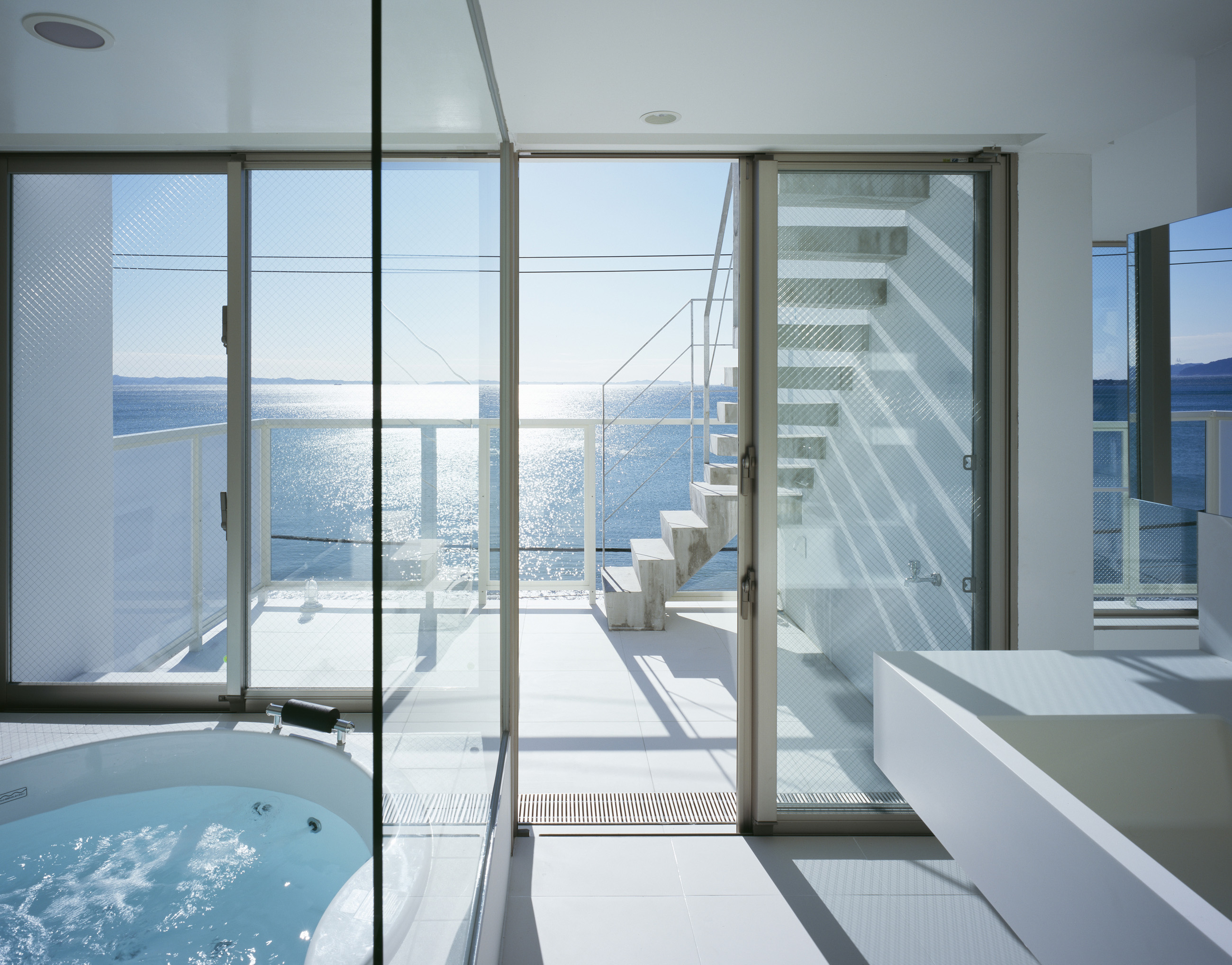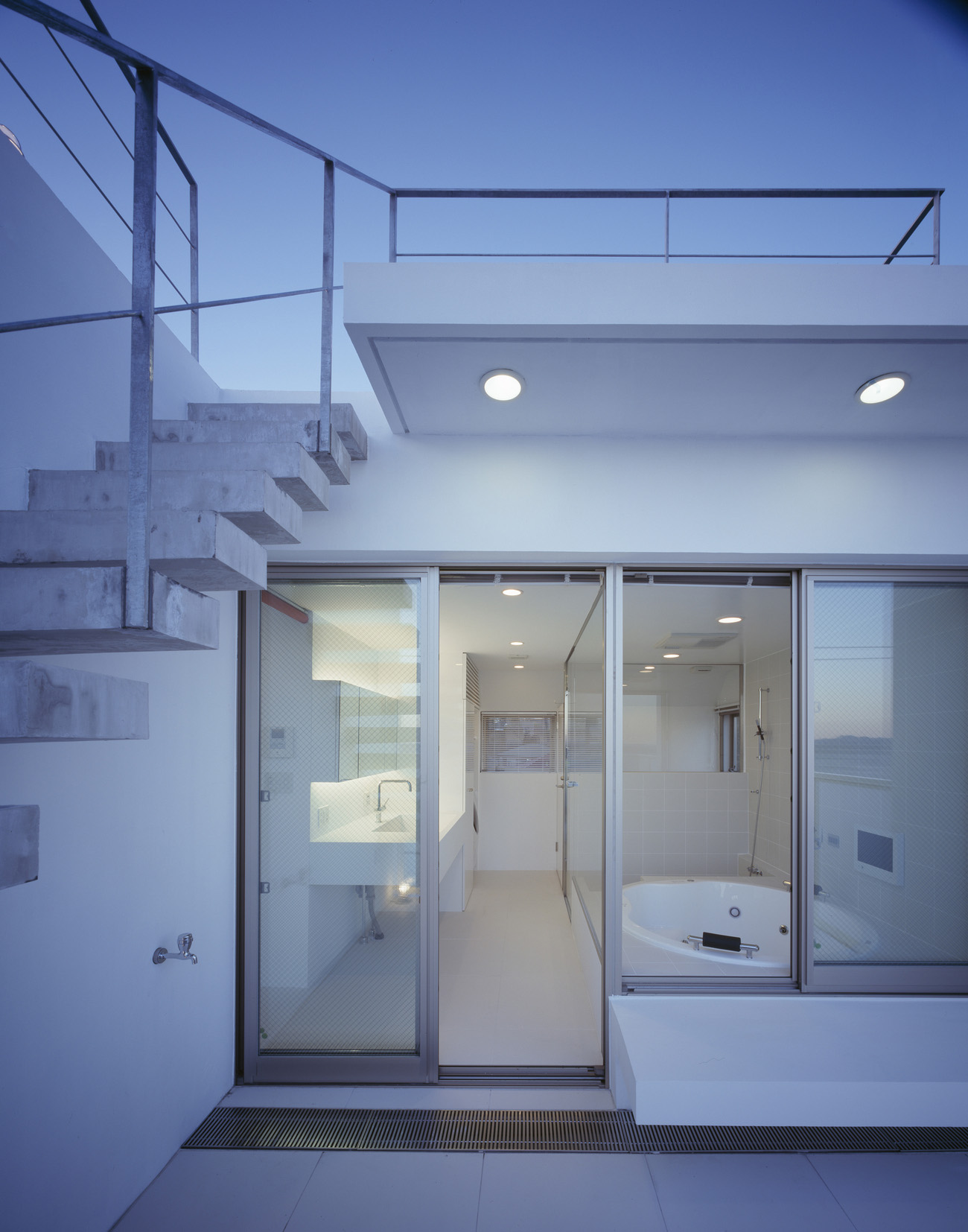 4階にはジャグジーバスとフルオープンの開口を設け、露天風呂気分も味わえるようにしました。
