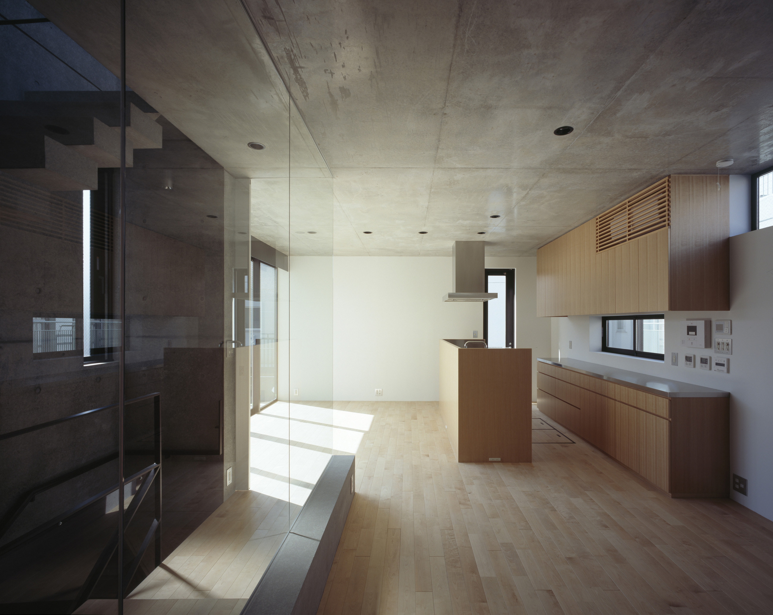Location Nishikata Bunkyo ward Tokyo Completion 2009. 4 Lot area 158.31㎡ Site area 67.35㎡ 1F floor area 47.25㎡ 2F floor area 66.55㎡ 3F floor area 53.19㎡ Total floor area 166.99㎡ Structure RC Scale 3F Typology Private housing Family structure A couple and a child Structure engineers Masaki Structures Laboratory Kenta Msaki Facility engineers Shimada Architects Zenei Shimada Construction Maekawa Construction Photographer Masao Nishikawa -