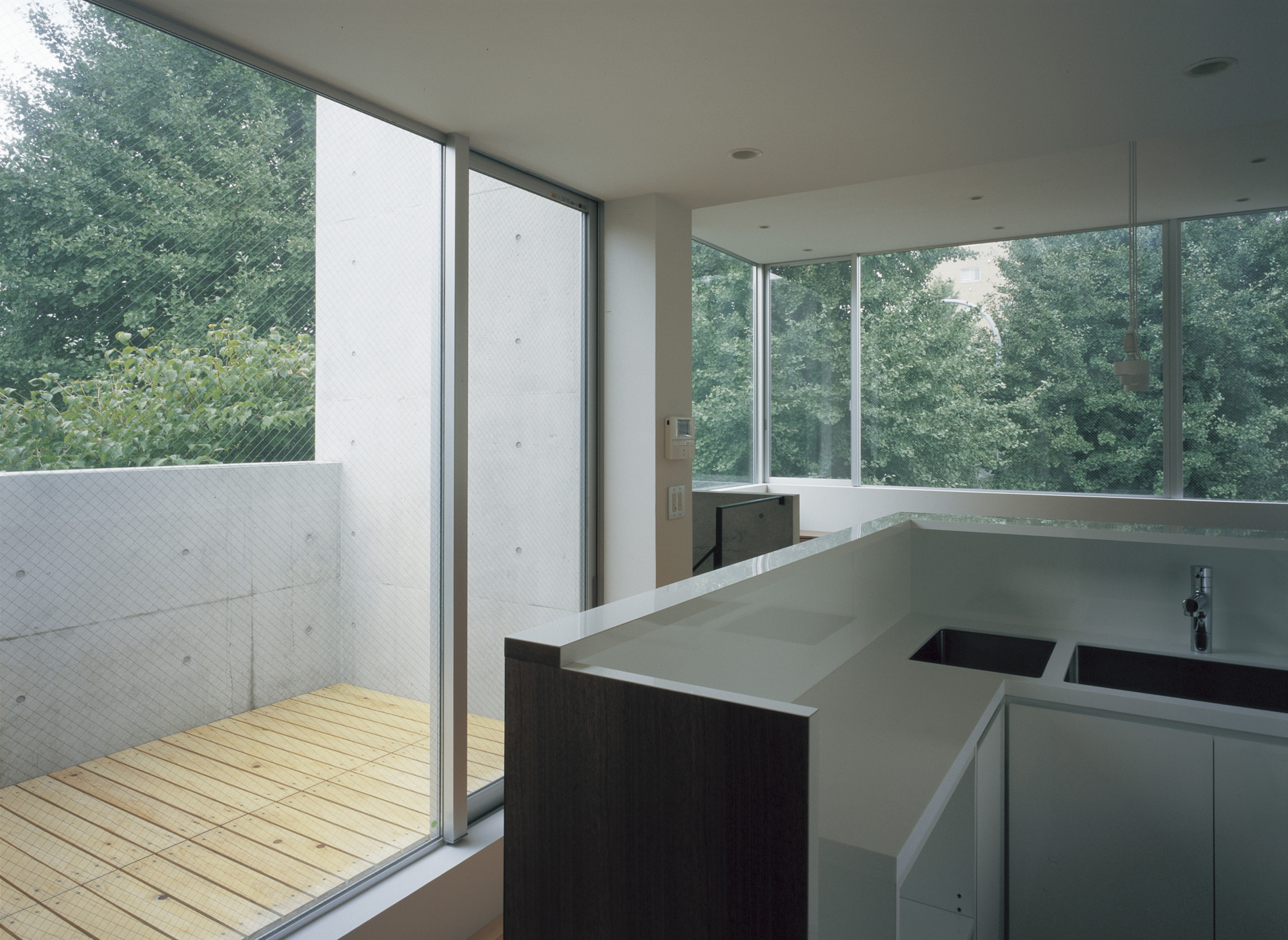 Location Shirayama Bunkyo ward Tokyo Completion 2007. 9 Lot area 166.87㎡ Site area 70.65㎡ 1F floor area 65.53㎡ 2F floor area 68.85㎡ 3F floor area 62.37㎡ Total floor area 196.75㎡ Structure RC Scale 3F Typology Private Housing Family structure 2 households Structure engineers Masaki Structural Laboratory Kenta Masaki Facility engineers Shimada architects Zenei Shimada Construction Maekawa Cnstruction Photographer Masao Nishikawa -