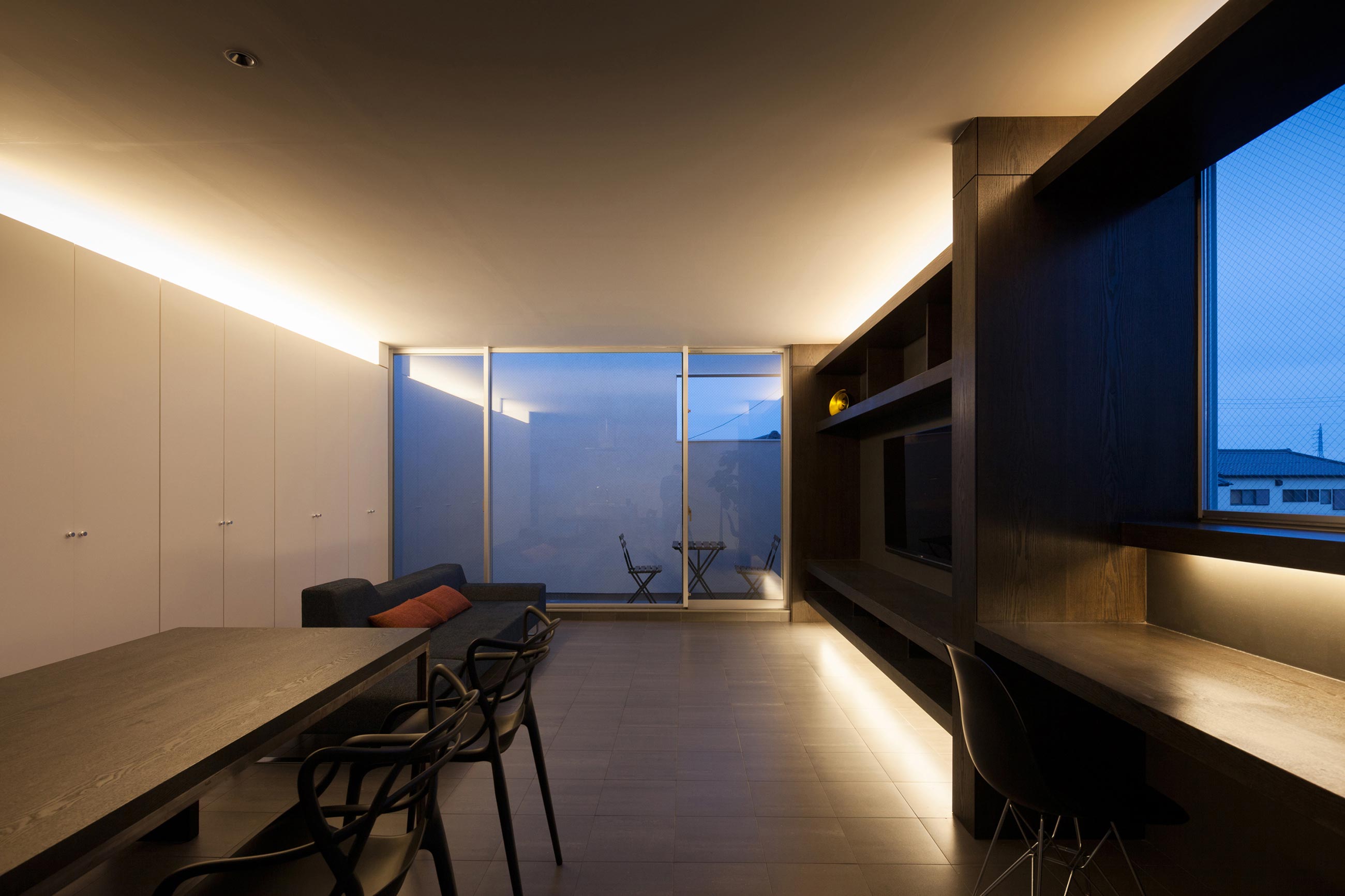 The interior finish and furniture of the family room is intentionally given monotonous colors with the utmost simplicity, allowing this space to be converted from the living space into alternative gallery space in the future to exhibit the art collection of the client. It will be a viewing room, for living together with art without loosing sense of privacy, by making good use of inner balcony and other elements for fully reducing openings of the building directly connecting to the outside.