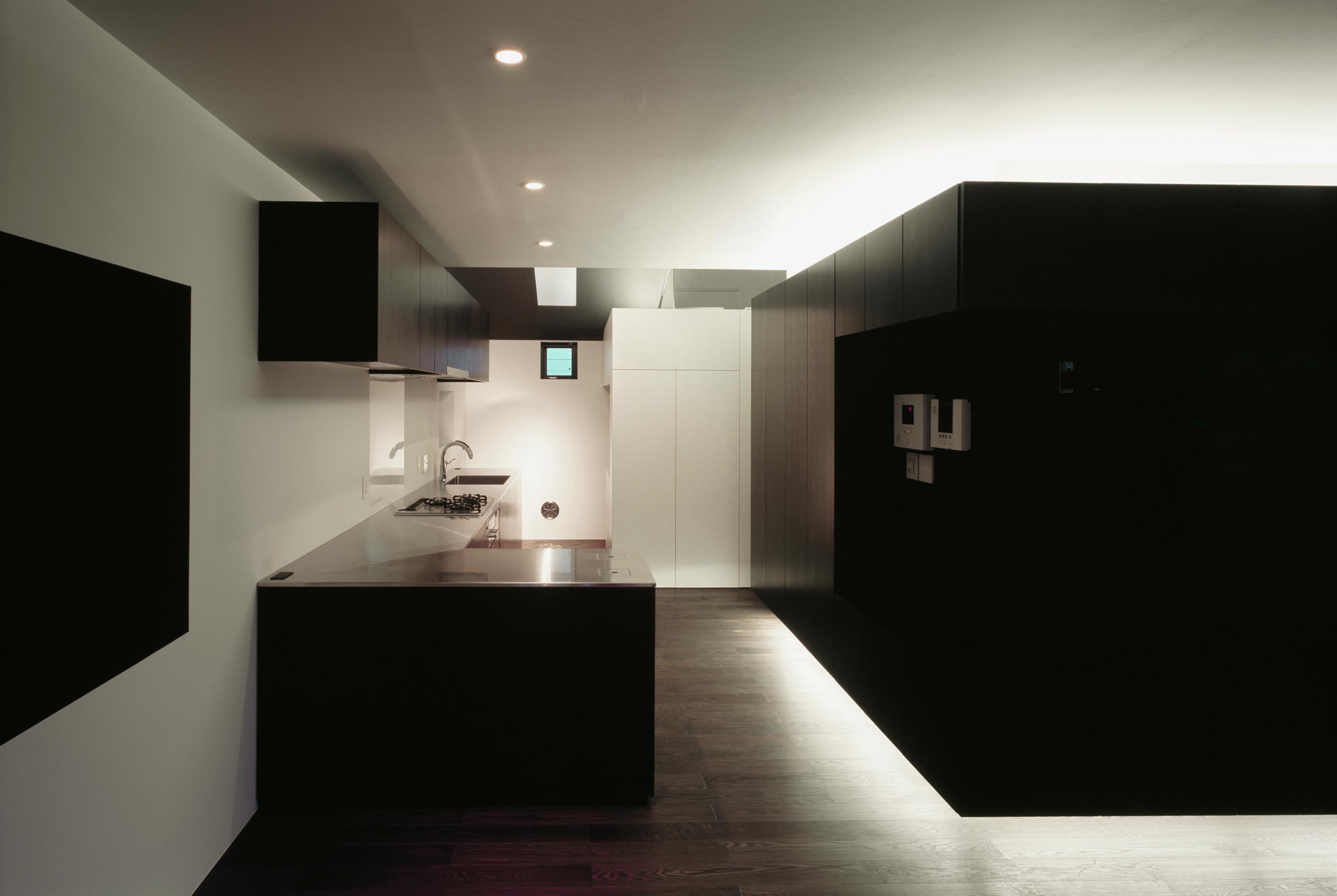 Location Kakinokizaka Meguro ward Tokyo Completion 2009. 1 Lot area 248.72㎡ Site area 82.08㎡ 1F floor area 60.10㎡ 2F floor area 81.44㎡ 3F floor area 45.18㎡ Total floor area 186.72㎡ Structure RC + Steel Scale 3F Typology Private Housing Family structure A couple (30s) + a hildren + mother Construction Maekawa Constructions -