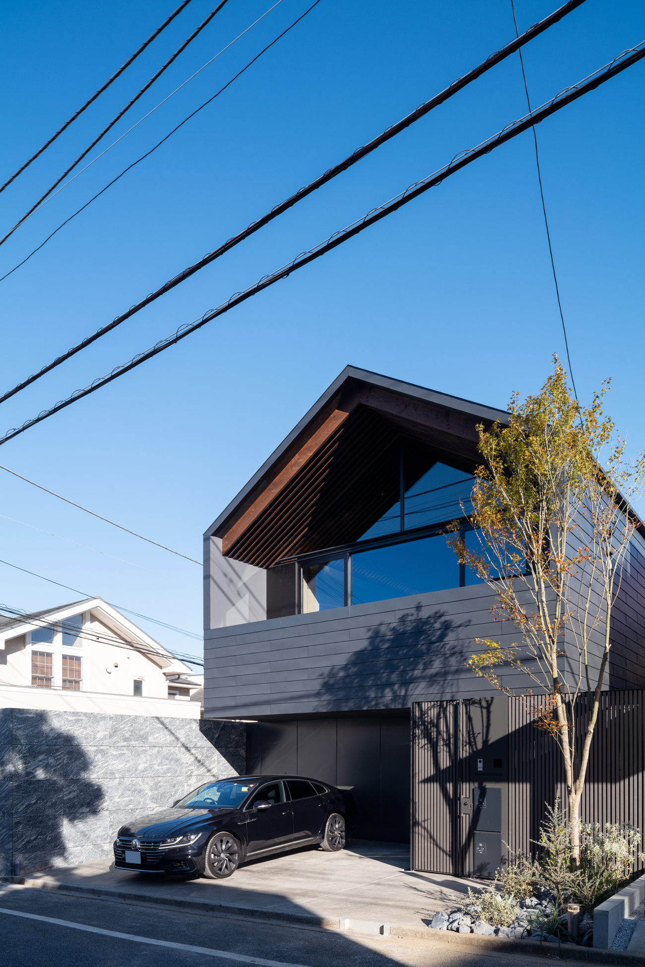 Location Setagaya ward Tokyo Completion 2023.12 Site Area 157.85㎡ Building Area 70.96㎡ B1F floor area 64.69㎡ 1F floor area 67.65㎡ 2F floor area 58.06㎡ Total floor area 190.04㎡ Structure Timber Scale One basement story and Two stories above ground Typology Private housing Structure engineer Motoi Nomura structure