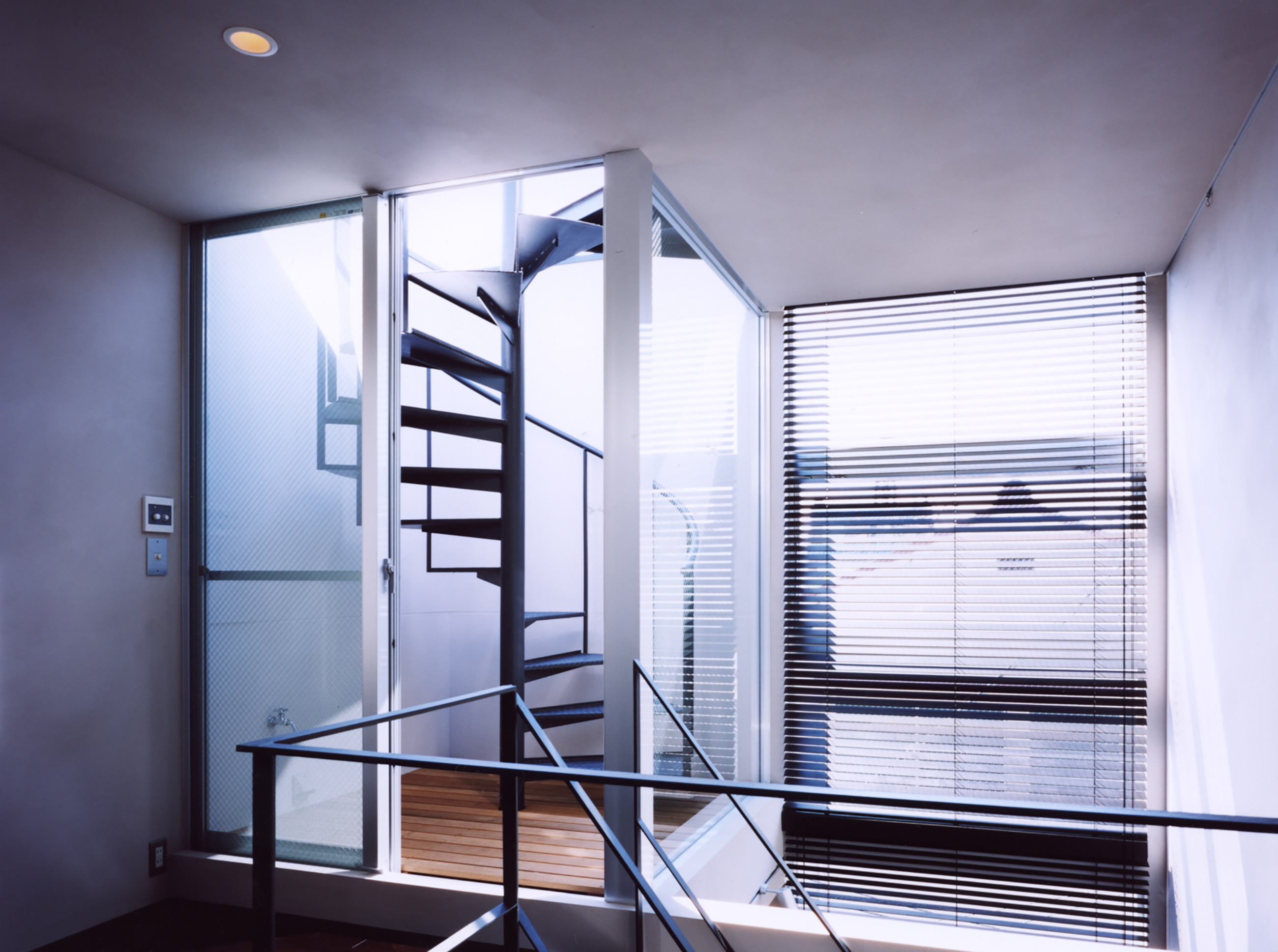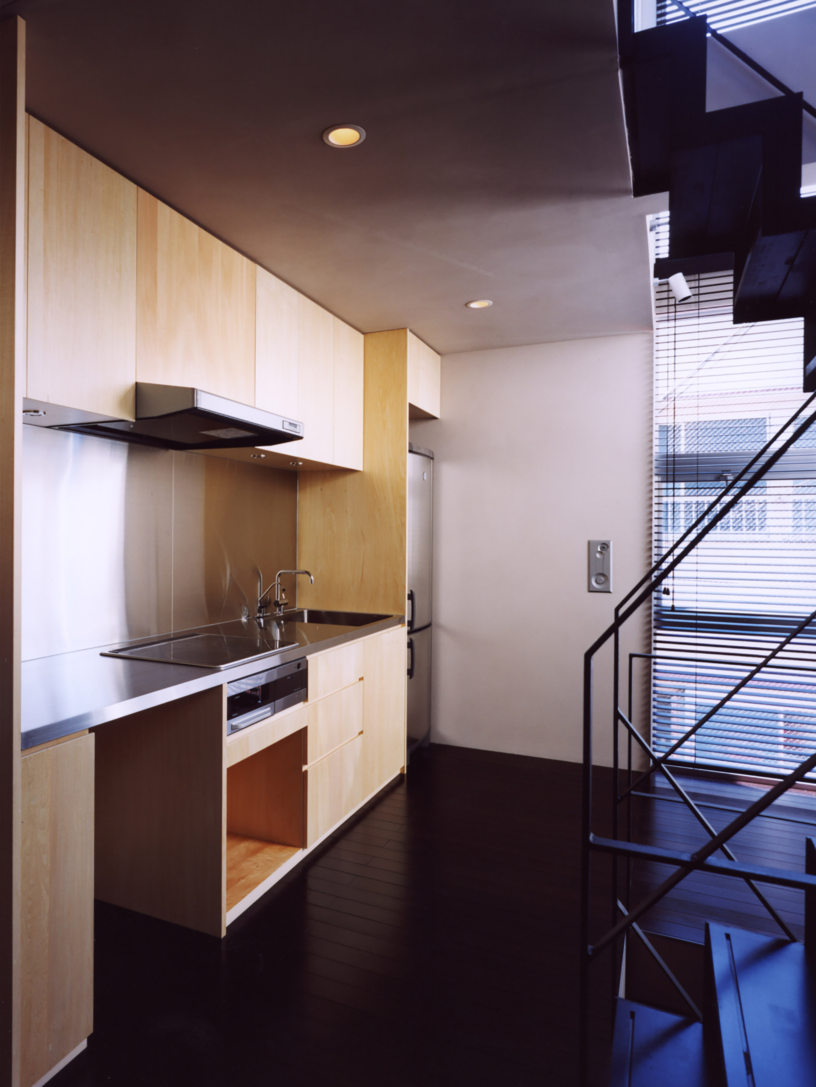 Location Sumida ward Tokyo Completion 2004. 10 Lot area 31.99㎡ Site area 19.08㎡ 1F Floor area 19.08㎡ 2F Floor area 19.08㎡ 3F Floor area 14.04㎡ Total floor area 52.20㎡ Structure LGS Scale 3F Typology Private Housing Family structure A couple + their parents Structure engineers Masaki Structural Laboratory Kenta Masaki Facility engineer Shimada Architects Zenei Shimada Construction Maekawa Construction Photographer Mikihisa Matsuda -