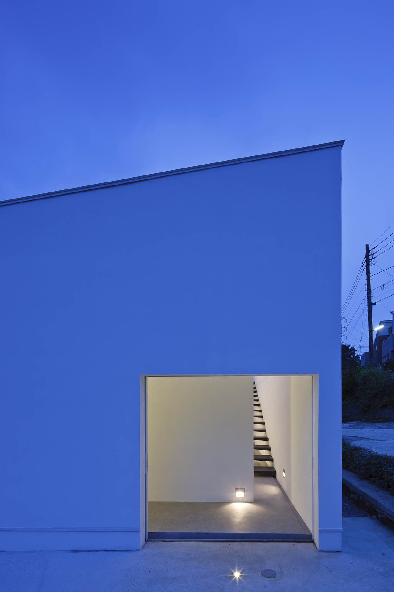 The plot on the hill in Hodogawa is impressive with its flat dimension enclosed by 3 sides. The client is interested in modern art and photographs and he wished to own a residence featured with his art collections.