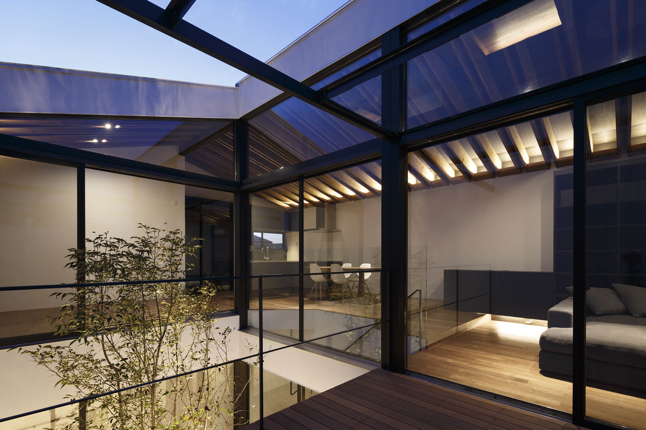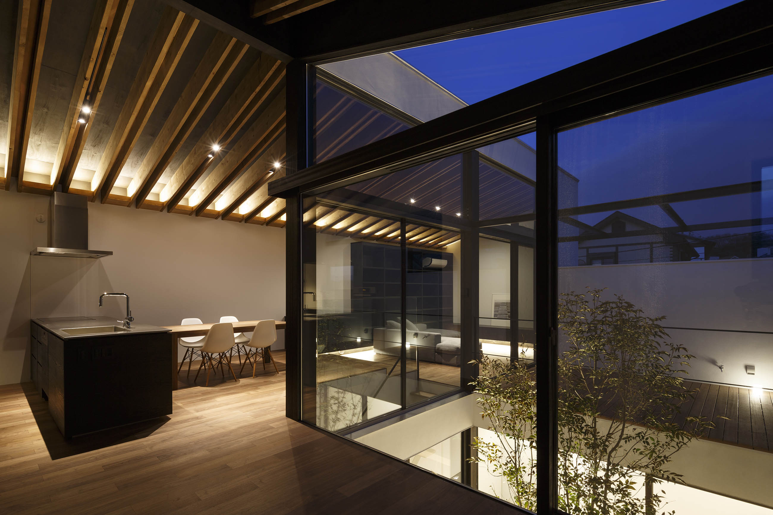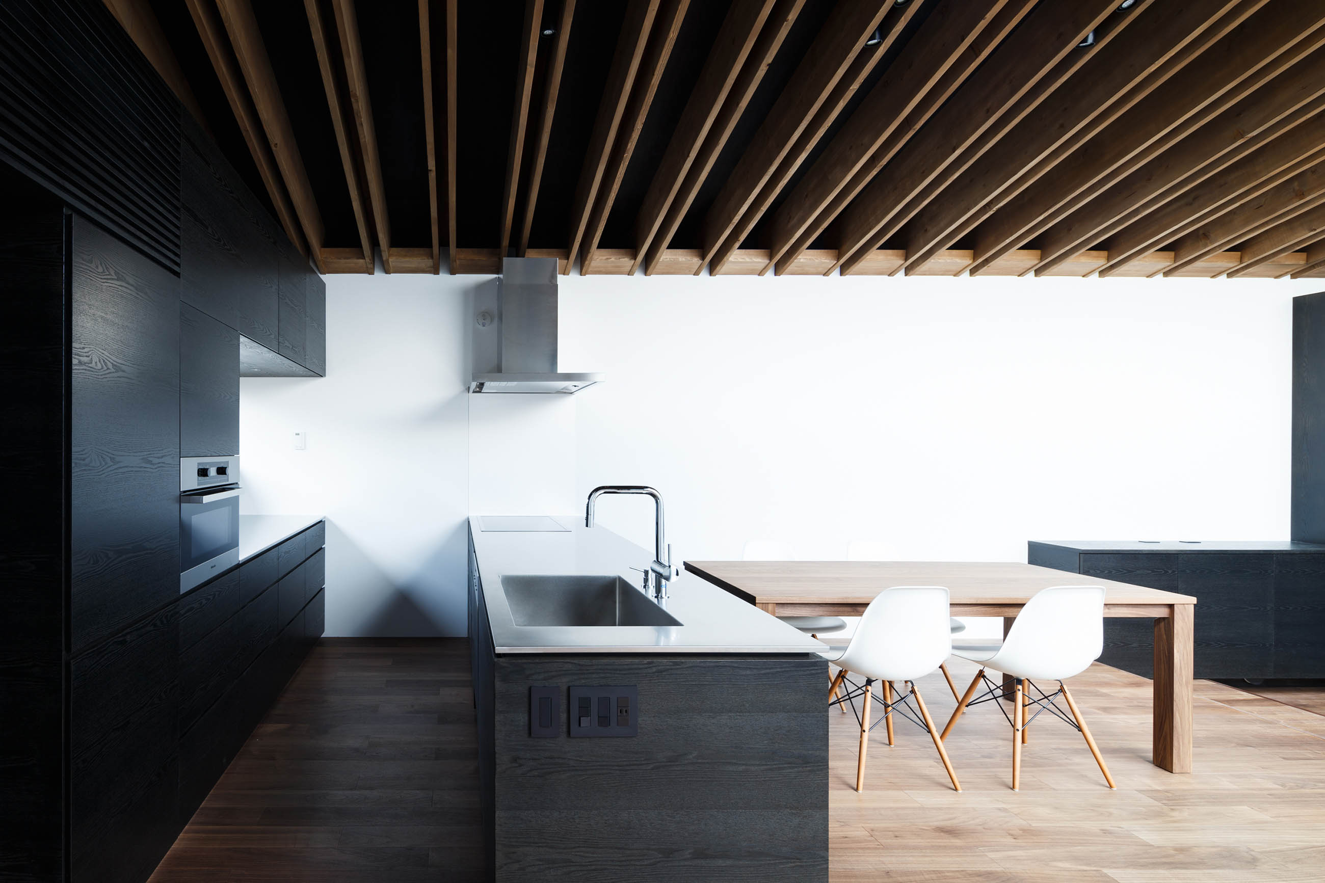 An extra space is provided next to the dining kitchen area for spending spare time–reading or working on hobbies–which helps residents to fully enjoy their lives without limiting where they may be Indirect lighting at night gives a different atmosphere from daytime by illuminating the ceiling with gradation of light.