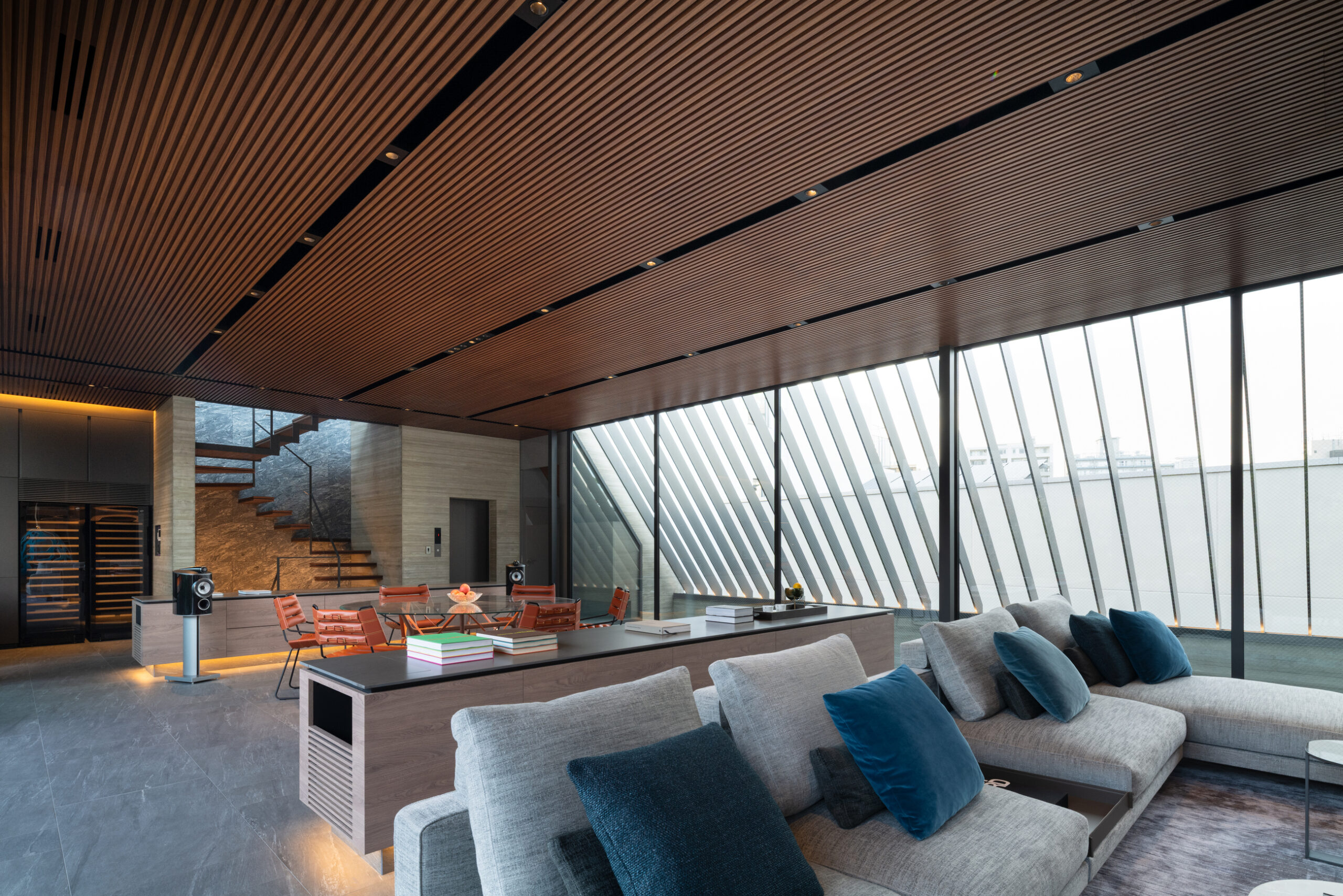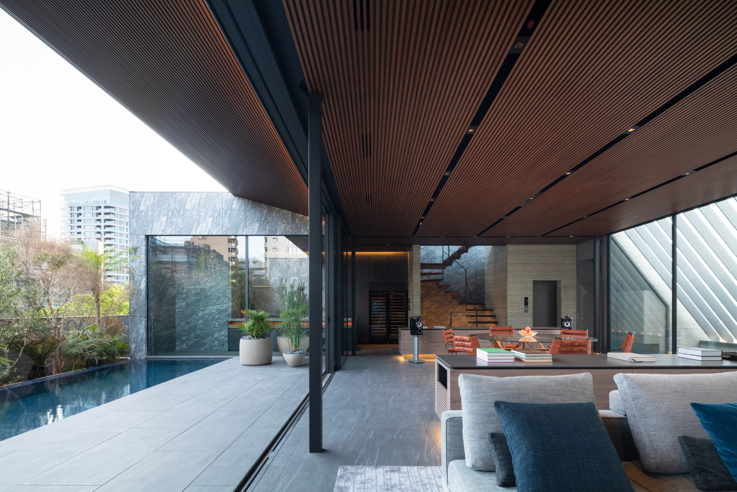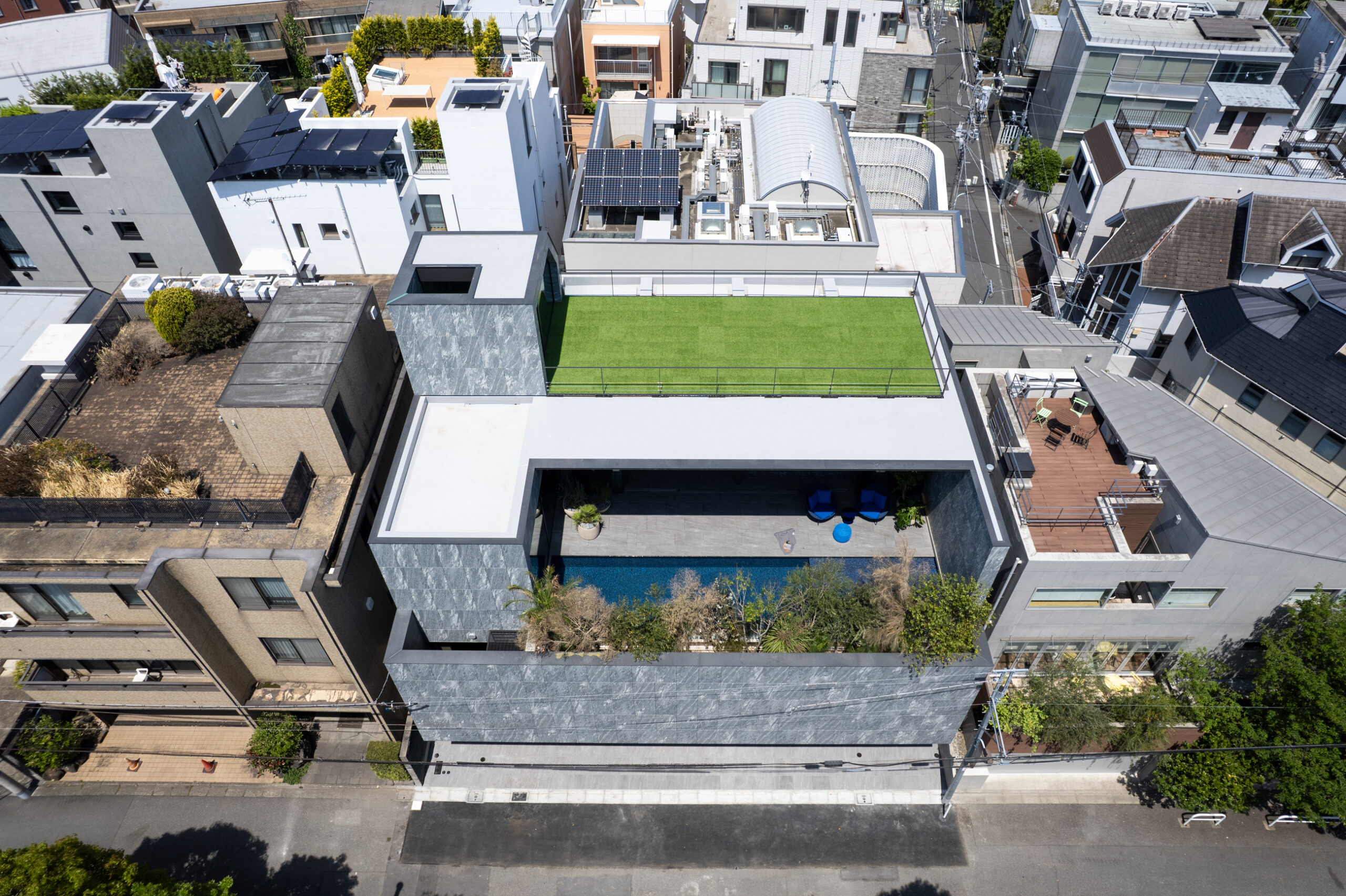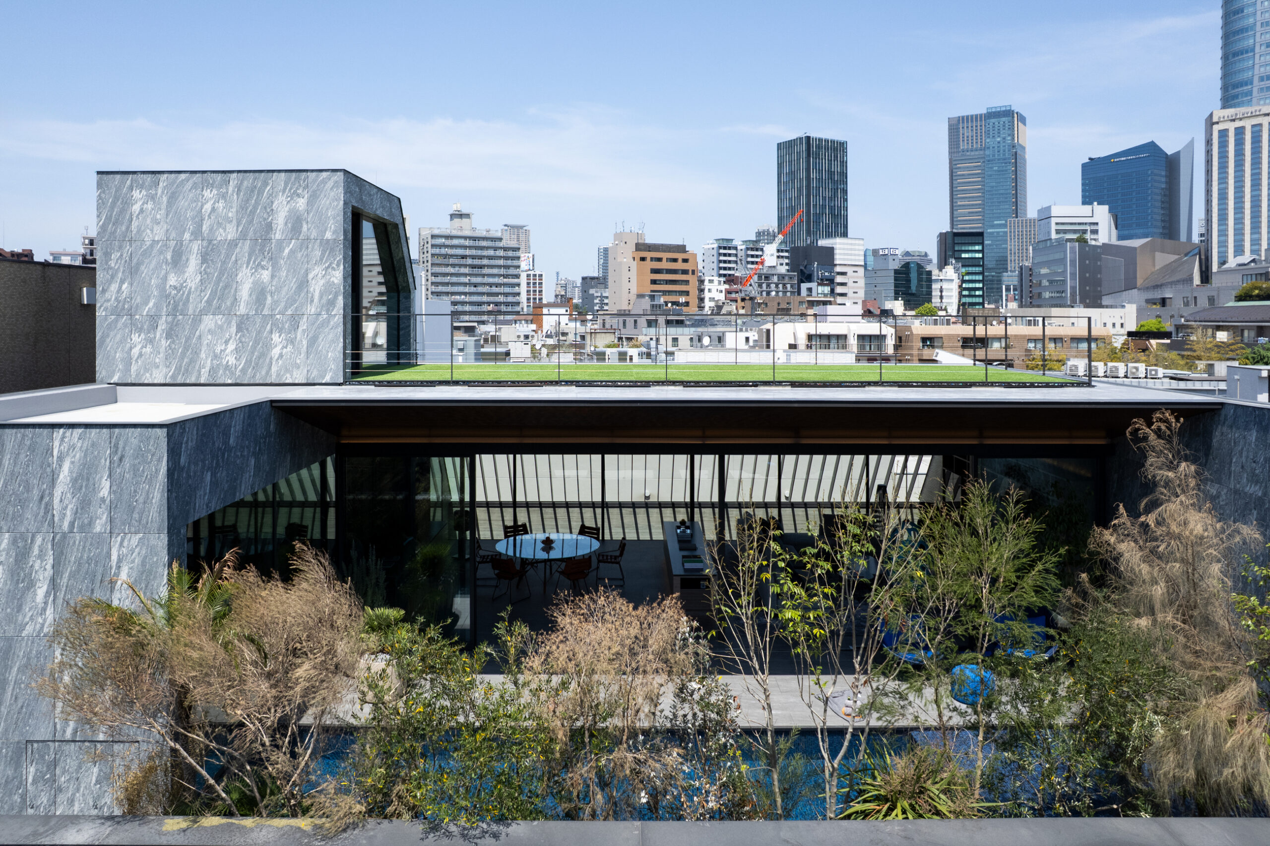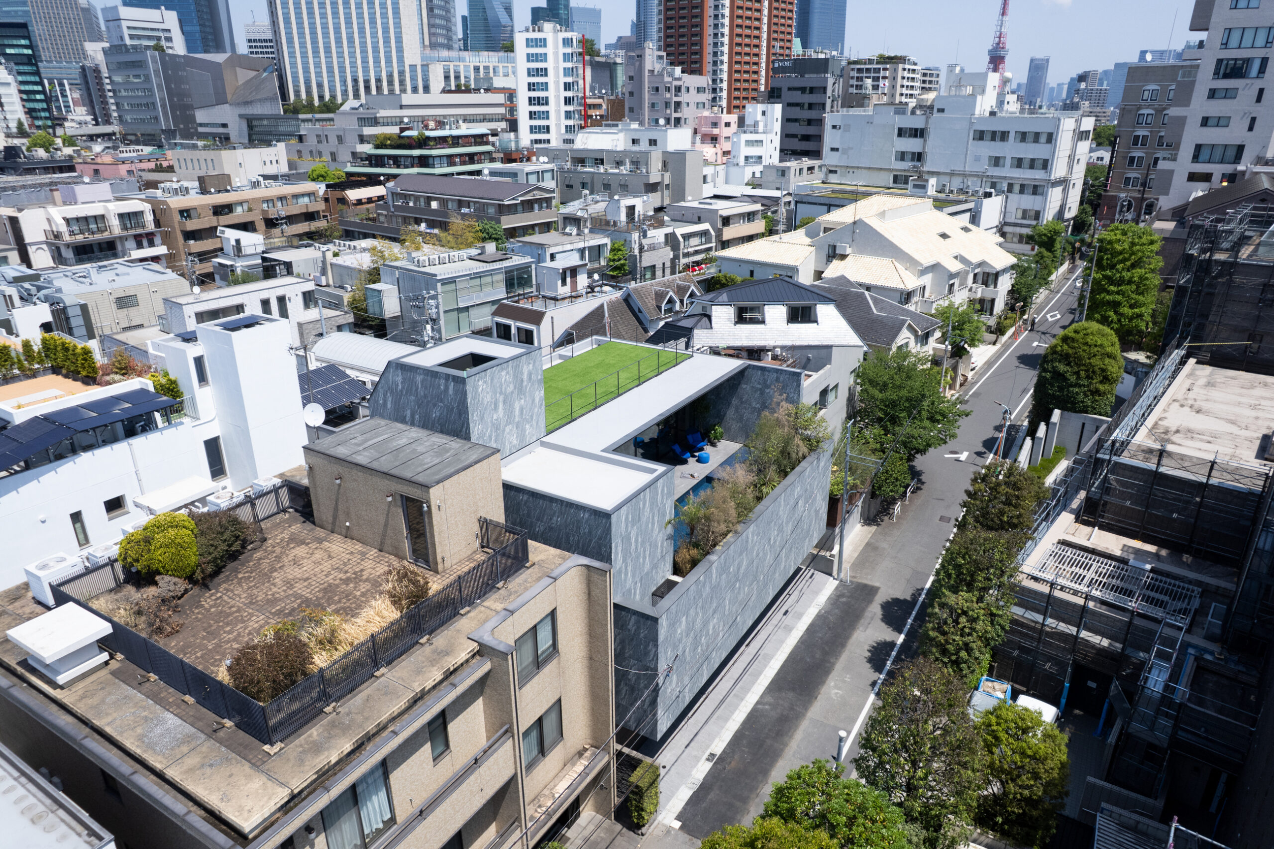 Location Minato ward Tokyo Completion 2025.04 Site Area 313.83㎡ Building Area 214.92㎡ B1F floor area 106.09㎡ 1F floor area 195.41㎡ 2F floor area 170.99㎡ 3F floor area 134.65㎡ PHF floor area 9.36㎡ Total floor area 616.50㎡ Structure Reinforced Concrete Scale One basement story, Three stories above ground and Penthouse Typology Private housing Structure engineer Motoi Nomura Structure Motoi Nomura Facility engineer Sakamaki Facility Design Office Hiroyuki Sakamaki Lighting engineer SIRIUS LIGHTING OFFICE Inc Hiroto Totsune Contructor Katsura Komuten Co., Ltd Photographer Masao Nishikawa Videographer Seiya Aoki -