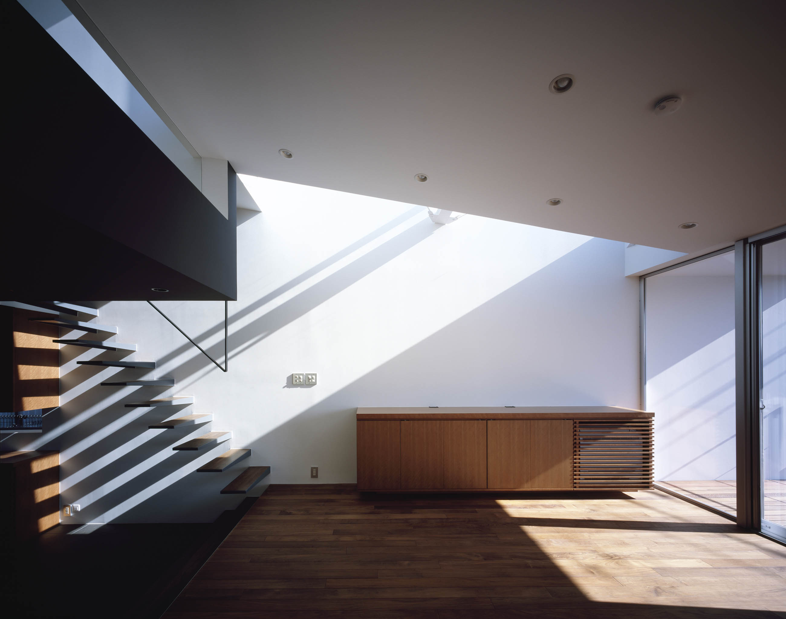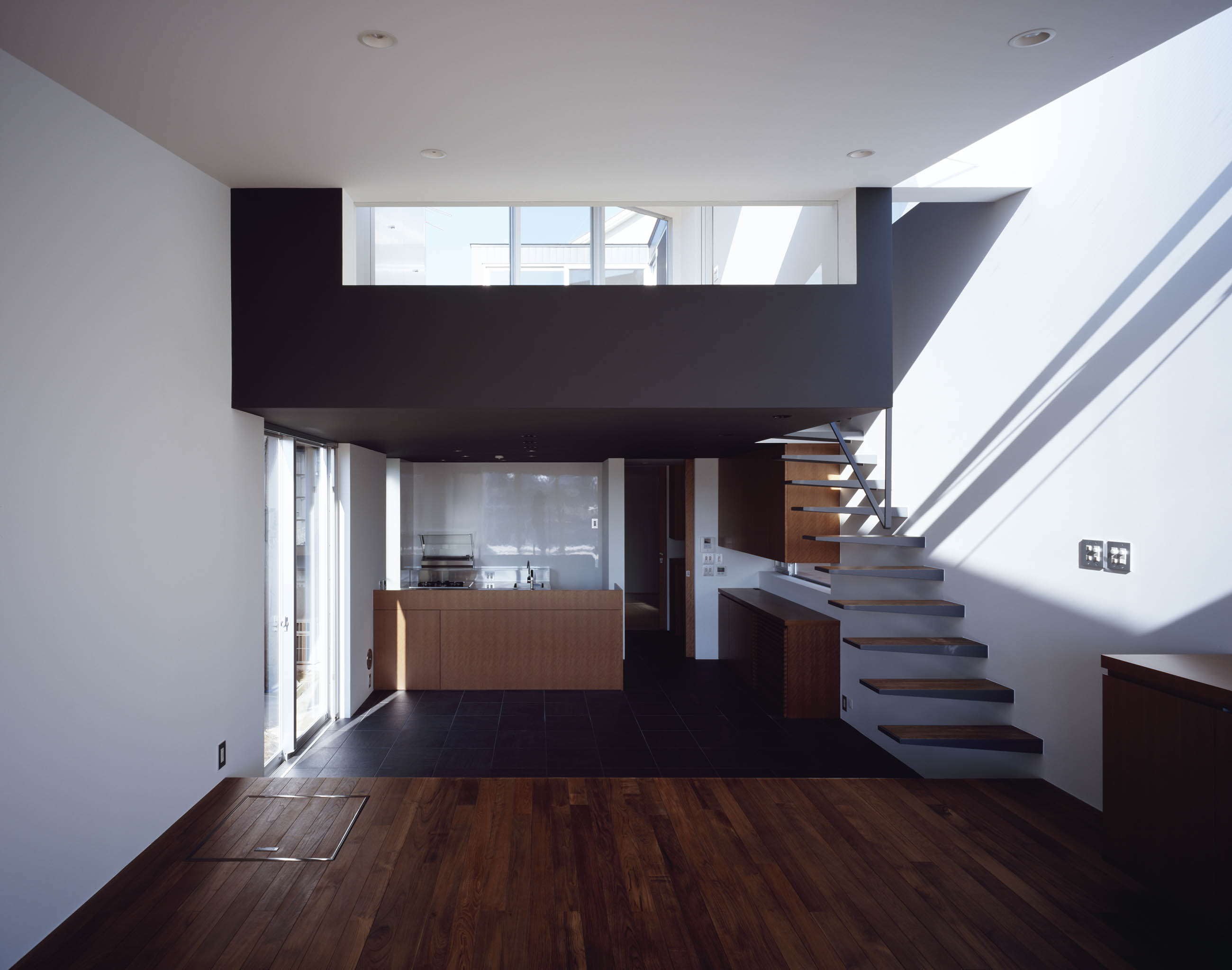 Location Higashikurume city Tokyo Completion 2008. 12 Lot area 215.06㎡ Site area 81.78㎡ 1F floor area 70.72㎡ 2F floor area 39.17㎡ Total floor area 109.89㎡ Structure Steel Scale 2F Typology Private housing Family structure A couple (30s) +a child Structure engineers Masaki Structural Laboratory Kenta Masaki Facility engineers Shimada Architects Zenei Shimada Construction TTC Construction Planning the house Photographer Masao Nishikawa -